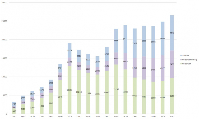 Entwicklung der ständigen Wohnbevölkerung in der Region Rorschach (1850 - 2020)