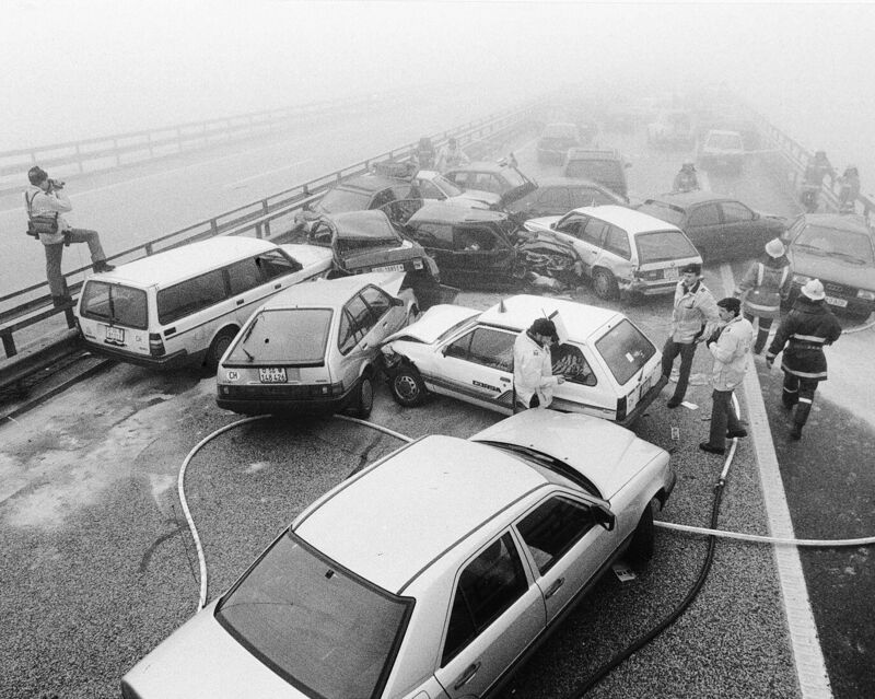 Warum lösen die Bilder etwas in einem aus, selbst wenn man den Ort nicht kennt? Auf diese Frage sagte Peter Müller im Interview: «Die Bilder wurden im Stress des Tagesgeschäftes gemacht – und doch treffen sie immer wieder ins Schwarze, wirken oft heute noch: Das ist ein kleines Wunder.» Eines seiner liebsten Bilder im neuen «Heft» ist das der Massenkarambolage auf der Autobahn oberhalb Goldach von 1994. 70 Autos waren beteiligt. Das Bild hat Symbolkraft. «Irgendwie sieht’s aus wie in einem Katastrophenfilm in Hollywood. Es ist aber bei uns, real und fragt zum Beispiel: Wie geht es mit der Mobilität weiter?»