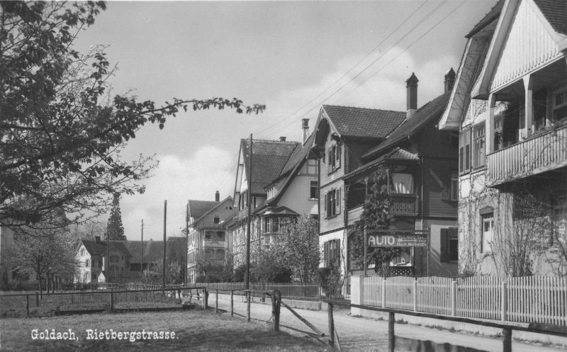 Die meisten Häuser an der Rietbergstrasse in Goldach stehen nach fast 100 Jahren immer noch. Auffallend die Naturstrassen, Wiesen und die vielen Obstbäume.
