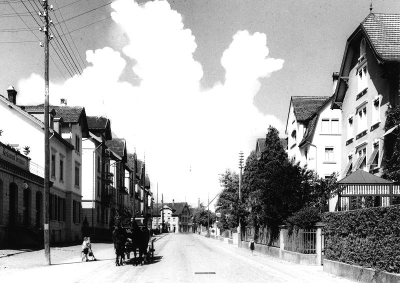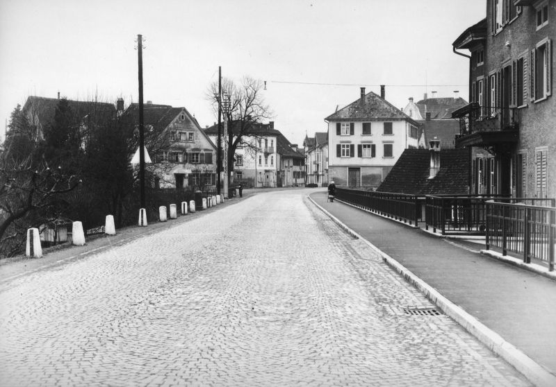 Seit der Eröffnung der Bahnstation Goldach 1886 wurde der Ruf nach der Überdeckung des Dorfbaches immer vernehmlicher. Die schweren Mehlfuhren der Bruggmühle und die noch gewichtigeren Lastenzüge der Marmorsäge verlangten nach einer breiteren Strasse. Vor 113 Jahren wurde der Bach gefasst, reguliert und mit drei Meter breiten Betonplatten überdeckt. Goldach erhielt damit seine Hauptstrasse, an der sich in der Folge Rathaus, Post, Kantonalbank und Ladengeschäfte etablierten.
