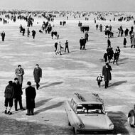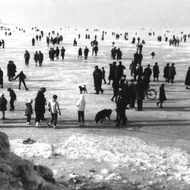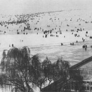 10. Februar. Der erste <Eissonntag> bringt bereits viele Hunderte von Gwundrigen an den Bodensee nach Rorschach. Die aus Feuerwehrleuten bestehende Wachmannschaft, die das Betreten des Eises verhindern sollte, ist dem Ansturm nicht gewachsen und muß sich darauf beschränken, allzu Wagemutige zurückzurufen. Die Zeitungen melden bereits die ersten Todesopfer. Ein deutscher Radfahrer und ein junger Knecht aus Uttwil sind auf der Eisdecke eingebrochen und ertrunken.