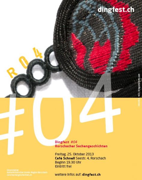 Die 4. Runde Geschichten zu Sachen und Dingen findet am Freitag, 25. Oktober 2013, um 19.30 Uhr im Café Schnell, Seestrasse 4, Rorschach statt.